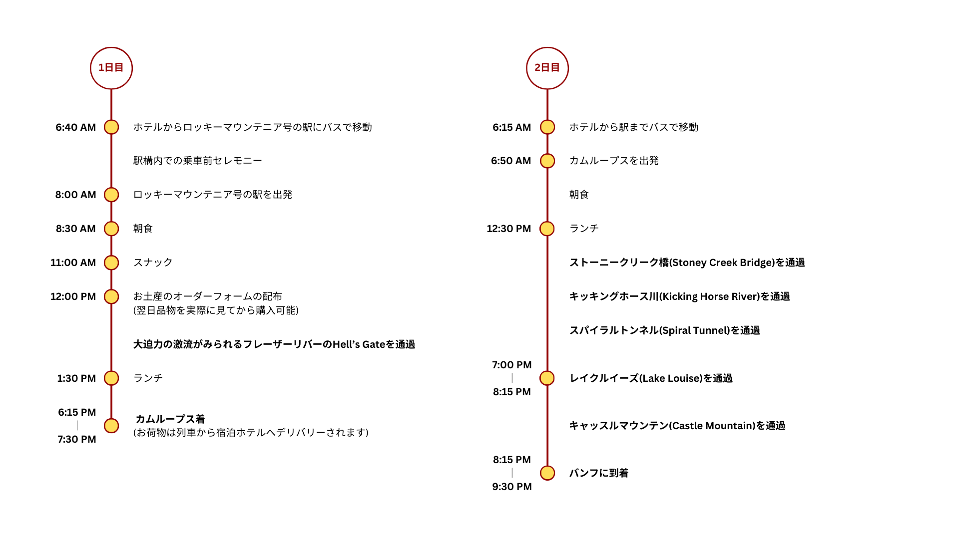また、最終目的地のバンフからは成田空港への直行便が出ているカルガリー空港までは2時間ほどで移動していただけますので、