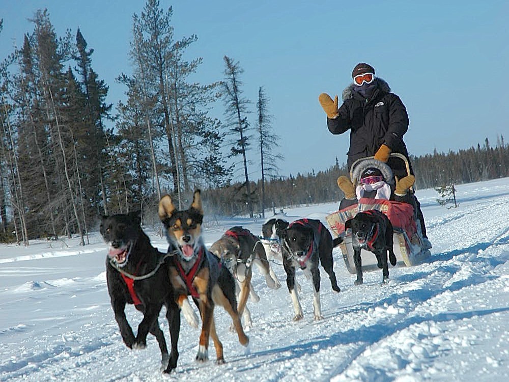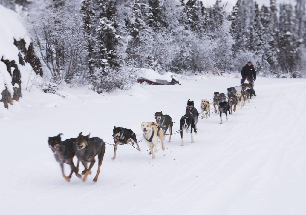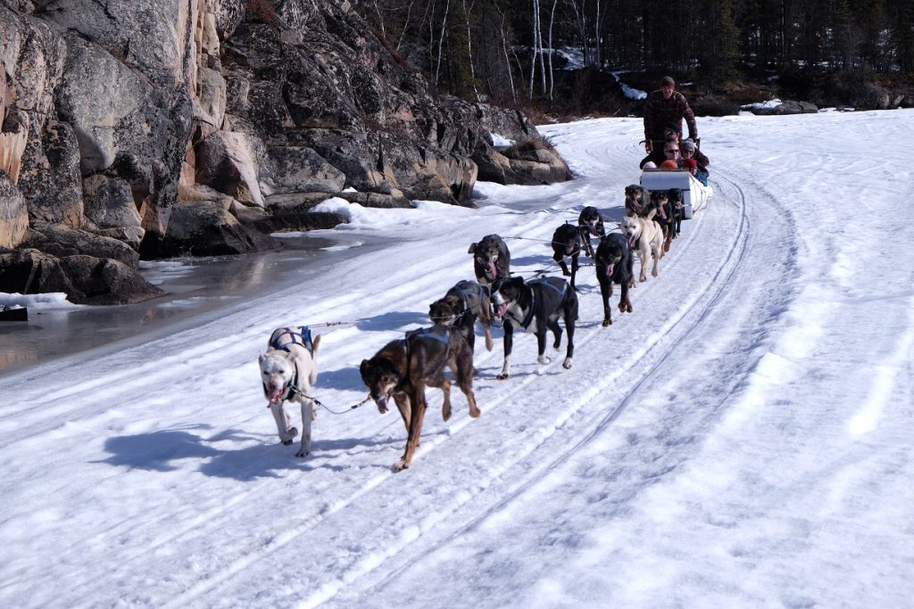 ご自身のドッグチームを走らせて、人里離れた湖畔に建つキャビンを目指します。