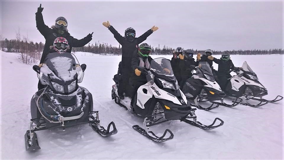 スノーモービルまたは車でグレート·スレーブ·レイクまで移動し、