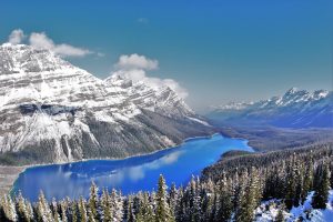 ペイト湖<下車観光>(6月中旬-10月下旬) ここを見る為だけにカナディアンロッキーに来る方もいらっしゃる程の絶景ポイントです。 |