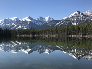 ボウ湖<下車観光> 大きな青い氷河湖が眼前に広がります、湖畔散策時に是非水を触ってみて下さい。 |