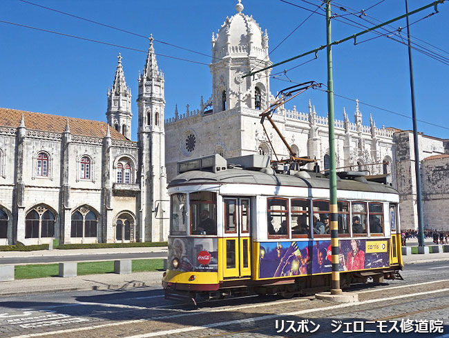 ロシオ広場からフィゲイラ広場付近の旧市街散策、ベレン地区では、ベレンの塔(下車)、発見のモニュメント(下車)、ジェロニモス修道院(教会部分)(入場)へご案内します。