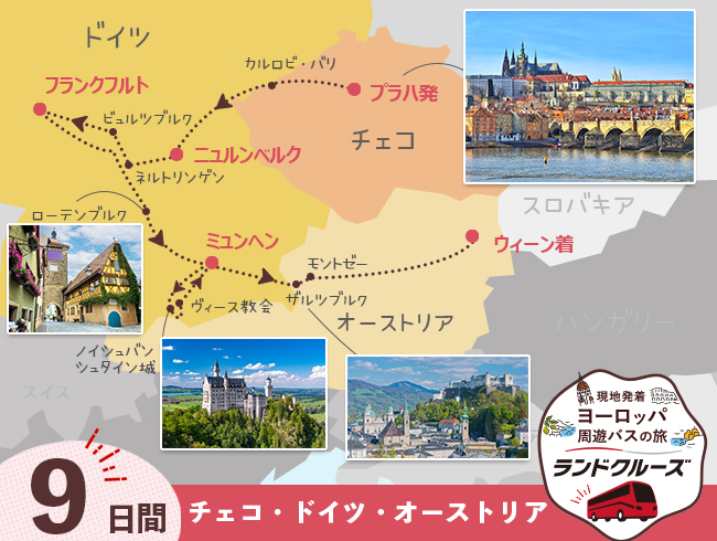 プラハ発 プラハとドイツ、オーストリア周遊 9日間 (ウィーン着)