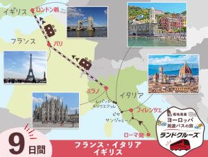 日本語現地係員が同行し、イタリア・フランス・イギリスの人気都市を周遊する充実ツアー!