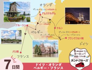 フランクフルト発 ドイツとオランダ、ベルギー、パリ 7日間(パリ着)