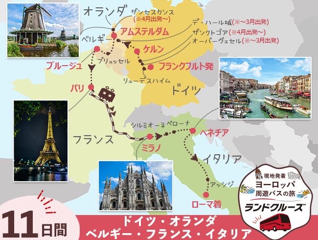 フランクフルト発 ドイツとオランダ、ベルギー、パリ、イタリア 11日間(ローマ着)