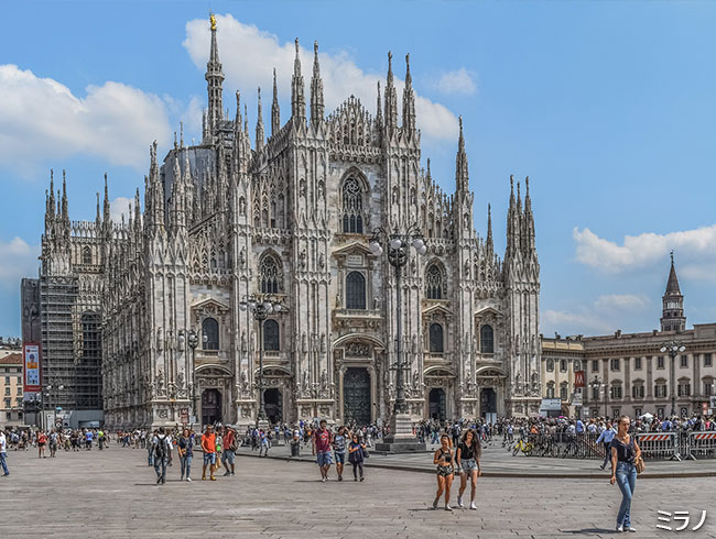 ミラノ/シルミオーネ/ベローナ/ベネチア(メストレ) 0800《2025年3月発まで》:<バス>ミラノ市内観光(約2時間) 0745《2025年4月発より》:<バス>ミラノ市内観光(約2時間) ビットリオ・エマヌエレ2世ガレリア(下車)やミラノのシンボル、ドゥオモ(入場)を訪れます。