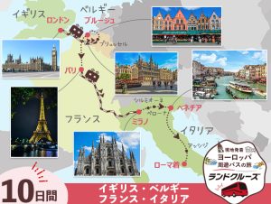 ロンドン発 ロンドンとベルギー、パリ、イタリア 10日間 (ローマ着)