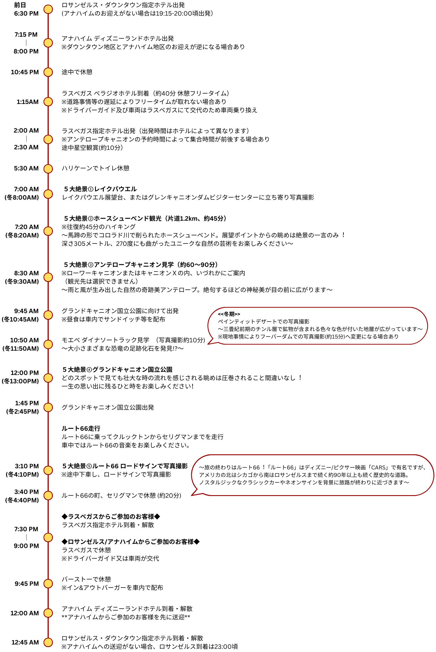 ※年末年始およびラスベガスで大型イベントがある時期はロサンゼルス⇔ラスベガス間の渋滞が予想されますので、ツアーは不催行となります。