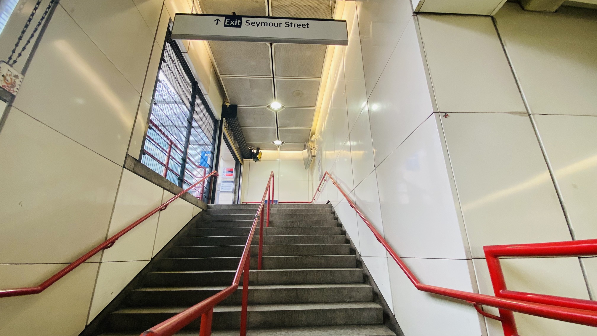 ■エスカレーターを上がり、改札を出たら、Seymour Street出口に向かってください